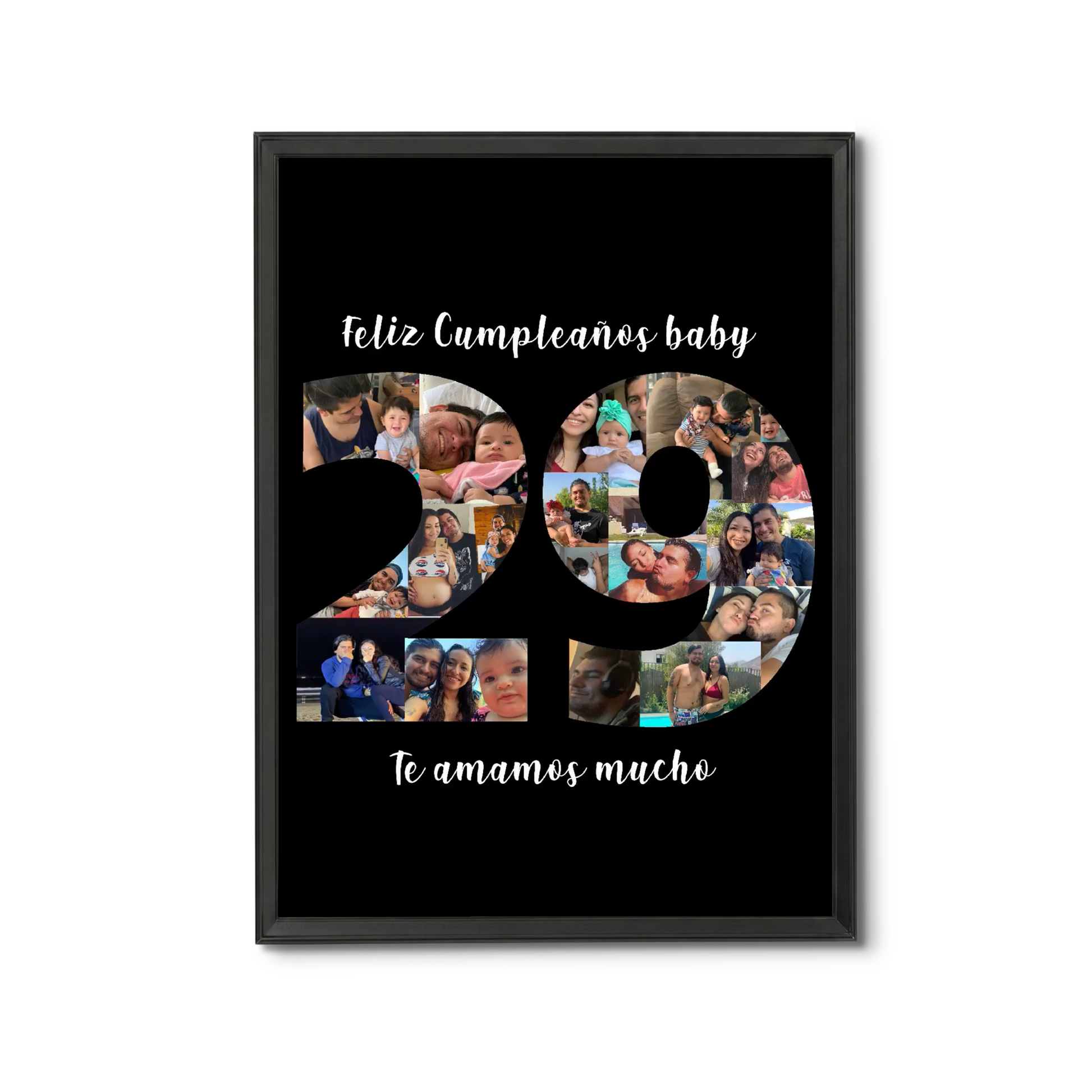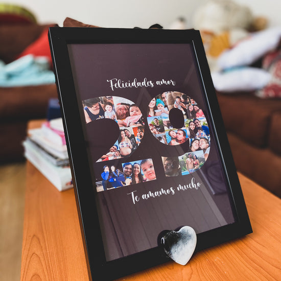 Un número especial relleno de tus mejores momentos. Elige el número que quieras, personalízalo con tus fotos y acompaña con las frases que quieras. Cada cuadro es personalizado, incluye impresión, marco y viene envuelto listo para regalar.
